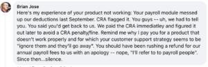 Anyone who’s had an issue with payroll calculations and deductions knows it leads to fines and unpleasant interactions with the Canada Revenue Agency. Small businesses in particular put their trust in payroll software to get things right so they don’t have to worry. Here’s an example of one upset user who not only had an issue with their pay run but are now also having trouble getting support.